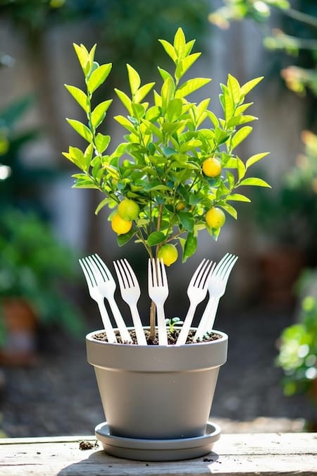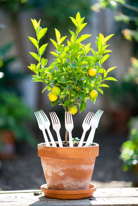 Poner tenedores de plástico en la tierra del limonero: los milagrosos beneficios de este truco casero