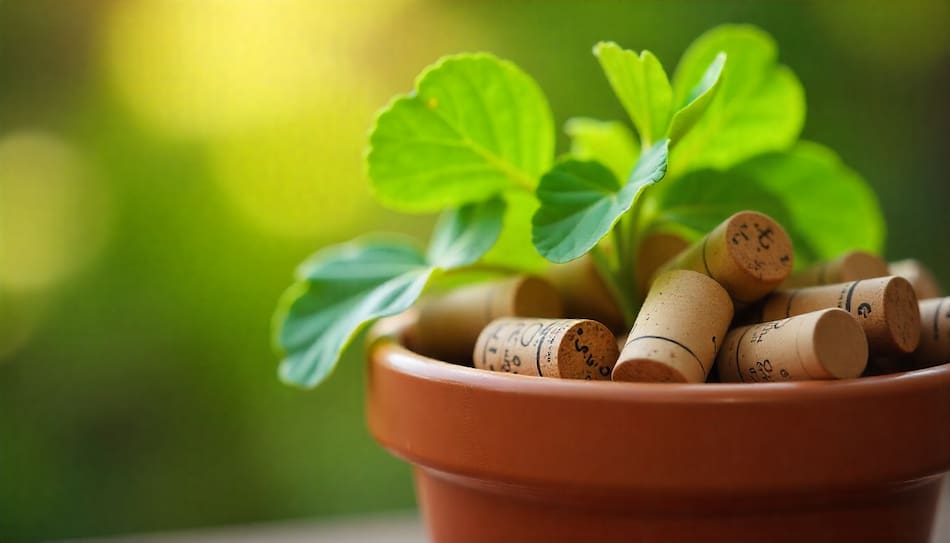 Utilizar corchos naturales es una forma de reciclar un material biodegradable. Con el tiempo, el corcho se descompone lentamente y puede incluso aportar un poco de materia orgánica al sustrato de la tierra.
