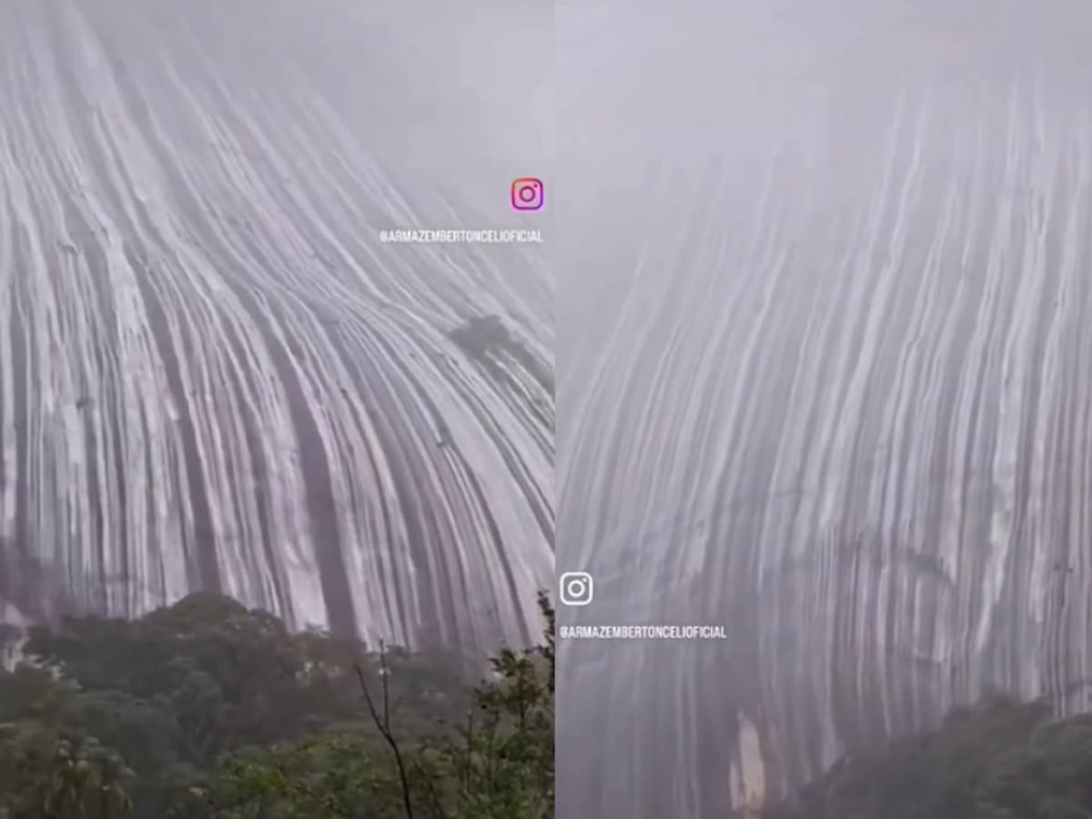 Un impactante fenómeno natural sorprendió a vecinos y visitantes en la localidad de Estrela do Norte en Brasil, donde una intensa lluvia transformó momentáneamente un acantilado en una gigantesca “cortina de agua”. El episodio fue registrado en video y rápidamente se viralizó en redes sociales por la magnitud del efecto visual.