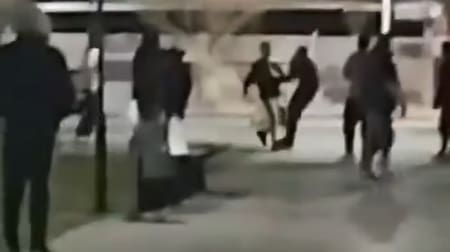 Las primeras imágenes que fueron viralizadas muestran el comienzo de una pelea callejera, la cual finalizó con la víctima inconsciente. Allí, además, se puede observar cuando el policía le patea la cabeza al joven ya desvanecido.