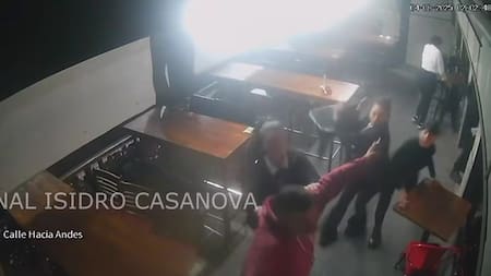 Fueron 20 segundos de extrema tensión, hasta que los agresores se retiraron del lugar en medio de los golpes de puño, patadas y sillazos que les propinaban los empleados del local.