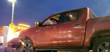 Frente a esa maniobra, los policías realizaron varios disparos contra la camioneta, la cual chocó contra un camión Mercedes Benz.