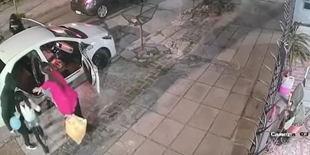Durante el forcejeo, dos delincuentes amenazaron al conductor y lo tiraron al suelo, provocándole una fractura en su muñeca izquierda. Mientras tanto, la madre salió apurada y abrió la puerta trasera para que su hija bajara. La pequeña, entendiendo la gravedad de la situación, descendió despacio, con sus brazos levantados y aferrando un globo.