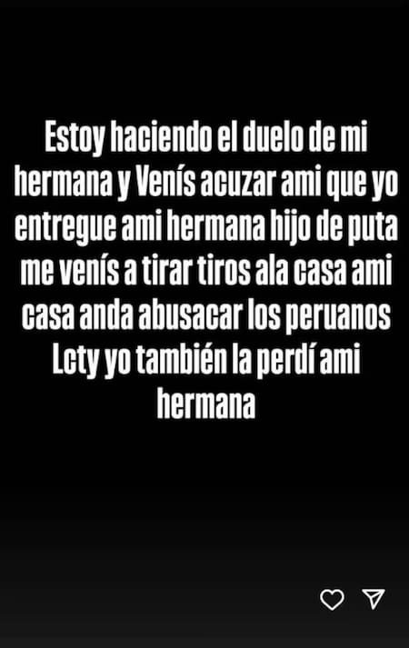 “Estoy haciendo el duelo de mi hermana y me venís acusar que yo entregué a mi hermana, h… de p…”, Escribió Agustina. “Lcty (sic), yo también la perdí a mi hermana”, cerró.