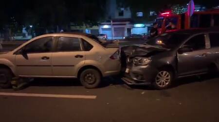 El siniestro comenzó cuando la linga de remolque se desprendió, lo que obligó a los ocupantes de ambos autos a descender sobre la colectora. En ese momento se produjo un choque en cadena que involucró a otros tres vehículos: una Volkswagen Amarok blanca, un Renault Logan gris y un Fiat Palio gris.
