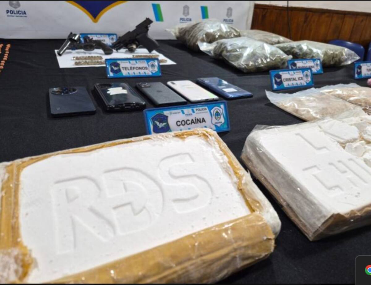 También encontraron armas de fuego, balanzas de precisión, celulares, máquina contadora de dinero y casi 5 millones de pesos en efectivo.