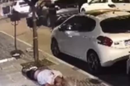 Las cámaras de seguridad de la zona registraron la secuencia en la cual el agente, identificado como D.M., jefe del Grupo Táctico de la Comisaría de Don Bosco, descargó su munición contra los sospechosos.
