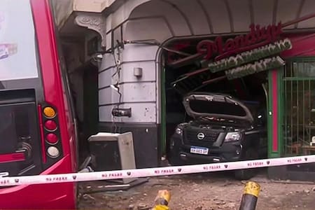 Como consecuencia del impacto, el móvil policial terminó incrustado dentro de una pizzería histórica del barrio, atravesando completamente la vidriera del local. En paralelo, el colectivo subió a la vereda y quedó detenido a pocos metros del comercio, con su parte delantera destruida y rodeado de escombros.