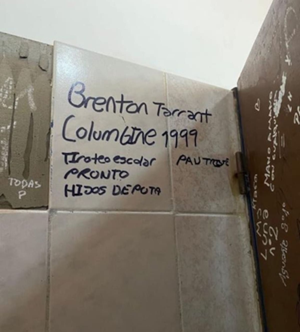 La mecánica se repitió con una frase que apareció en distintos lugares: “Mañana tiroteo”, escribieron en distintas paredes, baños, pupitres y mensajes digitales.