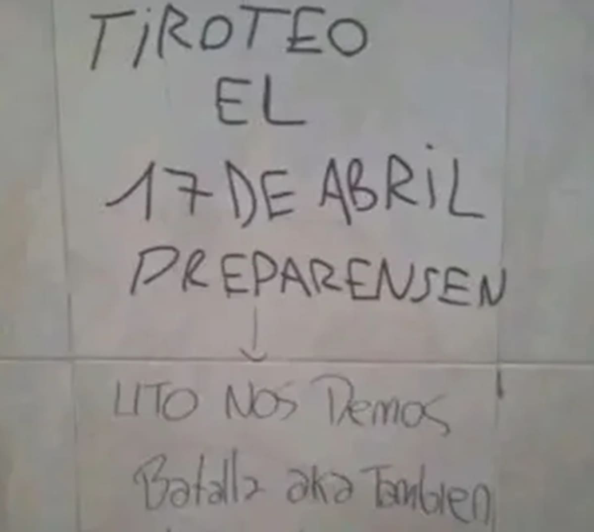 La mecánica se repitió con una frase que apareció en distintos lugares: “Mañana tiroteo”, escribieron en distintas paredes, baños, pupitres y mensajes digitales.