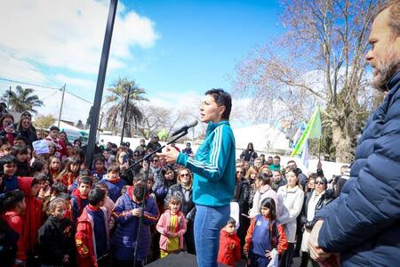 Y continuó: “Mayra, quiero que le cuentes a Cristina que estuviste en Ezeiza, en una tierra que no se va a cansar de agradecerle las obras y los derechos que Cristina le dio a Villa Guillermina y a Ezeiza en sus 8 años de Presidenta, y en los 4 años de Néstor Kirchner, la transformación total de Ezeiza, el inicio del cambio”.