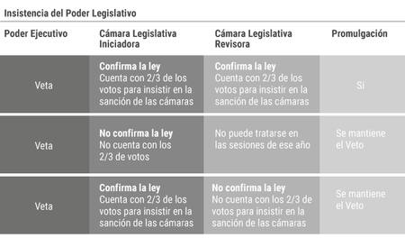 No basta con la insistencia de una sola de las cámaras: las dos deben conseguir los dos tercios para neutralizar la intervención del presidente.