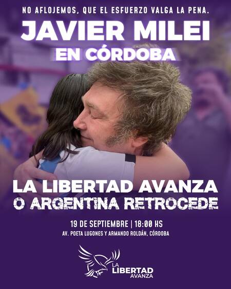 “Nos vemos en Córdoba. No aflojemos. Que el esfuerzo valga la pena. La Libertad Avanza o Argentina retrocede”, compartió el presidente en sus redes sociales para confirmar su presencia en la provincia gobernada por Martín Llaryora.