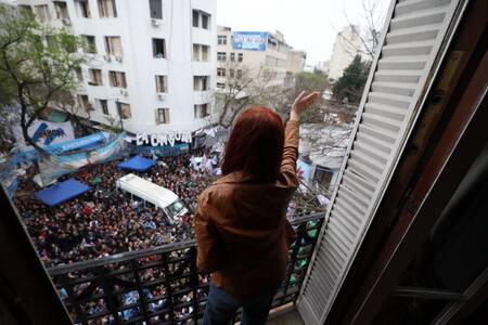 En medio de la concentración, la exmandataria se asomó al balcón y saludó a los militantes.