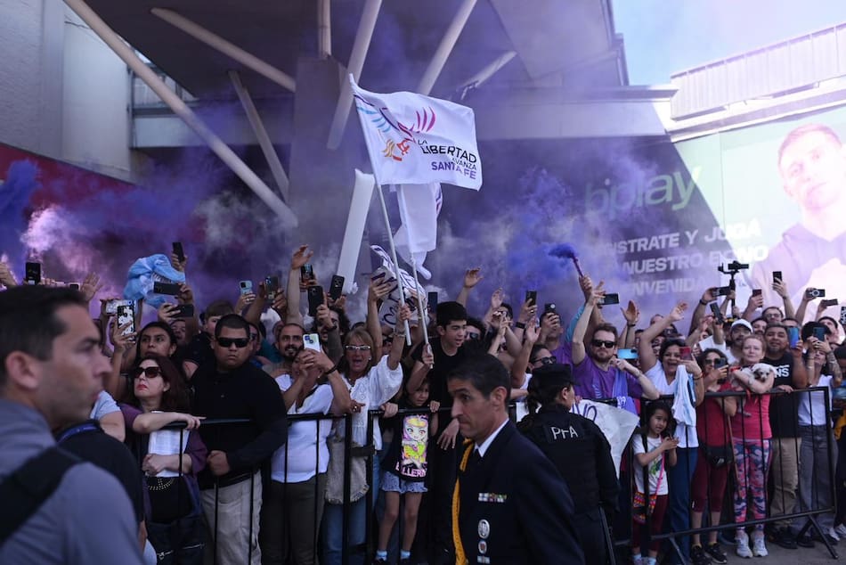 Mientras esto ocurría, Milei se encontraba a unas ocho cuadras de la peatonal, alojado en el Hotel Los Silos, ubicado en la zona del puerto de Santa Fe. Rodeado por una multitud de manifestantes, el mandatario salió del hotel acompañado por su hermana, Karina Milei, secretaria general de la Presidencia. Tras caminar unos metros hacia un vehículo en el Puerto de Santa Fe, saludó a los militantes.