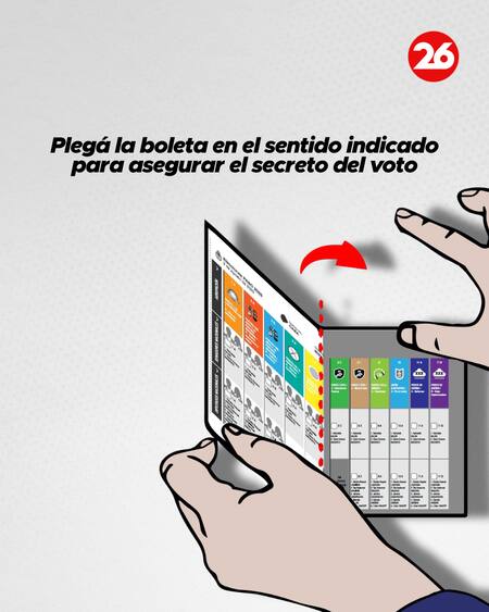 Cuando hayas marcado la casilla correspondiente a tu voto, doblá la boleta siguiendo las indicaciones en su dorso. Va a quedar visible la firma de la autoridad de mesa y tu voto permanecerá oculto.