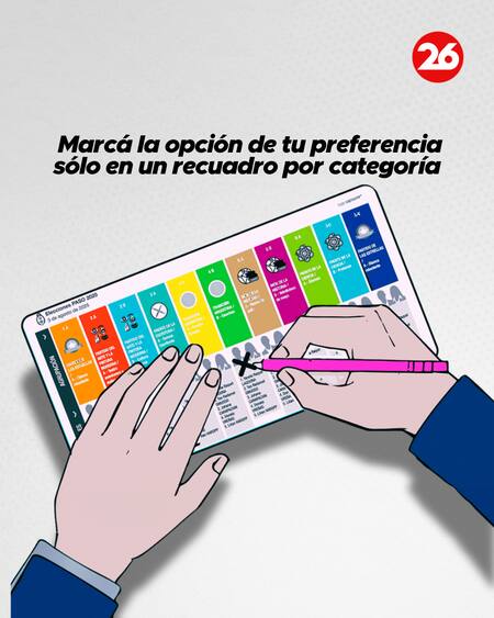 Marcá con la lapicera la opción de tu preferencia en el recuadro correspondiente. Recordá que solo podés marcar una lista por categoría. En el caso de las ocho provincias mencionadas anteriormente, vas a tener que hacer dos marcas: una para Senadores y la otra para Diputados.