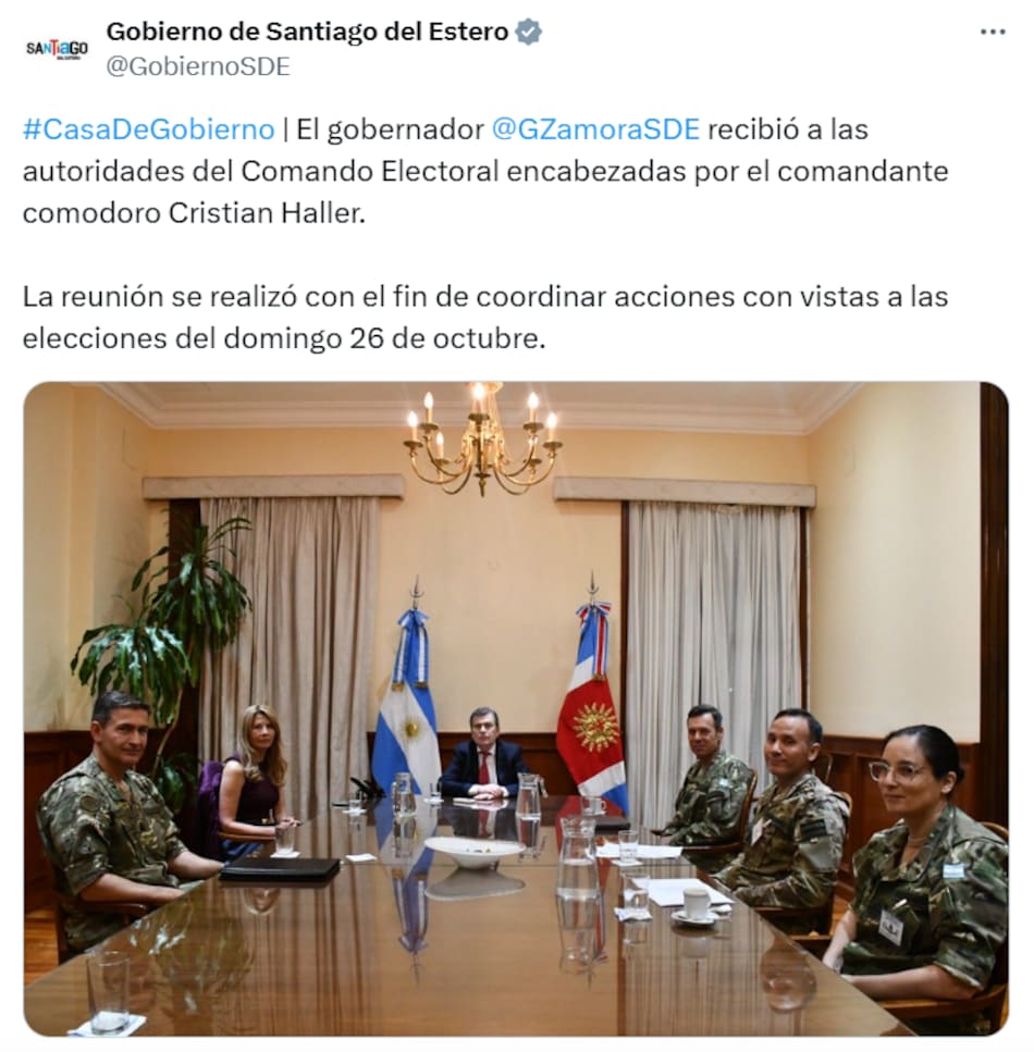 Por su parte, la cuenta oficial del Gobierno de Santiago del Estero publicó en X una foto del actual gobernador acompañado de autoridades del Comando Electoral.
