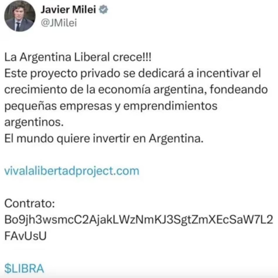 “Sin la promoción realizada por el Presidente Javier Milei en su cuenta oficial, el proyecto $LIBRA no habría alcanzado el volumen de compras registrado”, sostuvieron y resaltaron que hasta la fecha el jefe de Estado no pudo determinar cómo obtuvo el link con el número de contrato del token Libra que publicó, “pese a que dicha información no era de circulación pública”.