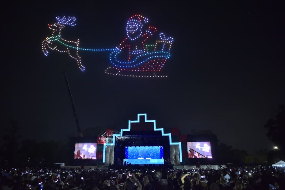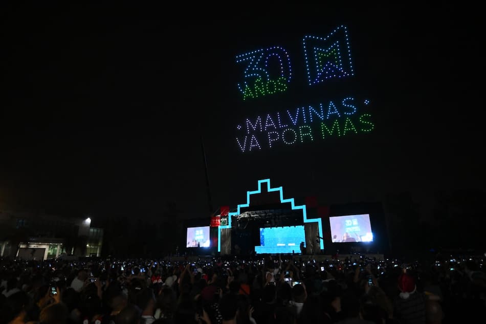 El espectáculo de primera calidad reunió música, danza y un despliegue de color con más de cien artistas en escena. La magia se hizo presente con Papá Noel volando entre la multitud y un cierre musical de gran nivel a cargo de la joven artista Ángela Torres, que conmovió a todos con su voz. La gran sorpresa de la noche fue el show de drones que iluminó el cielo con figuras icónicas de la Navidad y de la identidad e historia malvinense, sorprendiendo y emocionando a grandes y chicos. La Sagrada Familia, el tren Belgrano Norte, Papá Noél, un enorme “Malvinas 30 Años”, son algunas de las figuras que se pudieron ver desde cada rincón del distrito.