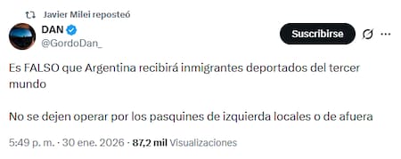 Además, aseguran que las conversaciones continuarán en otros frentes, como el principio de acuerdo comercial y las negociaciones para avanzar hacia un programa de exención de visas, anunciado en 2025. En ese marco, el presidente Javier Milei viajará el próximo 10 de febrero a la residencia de Donald Trump en Mar-a-Lago para participar de un evento del Partido Republicano, en una señal de continuidad del vínculo político con Washington.