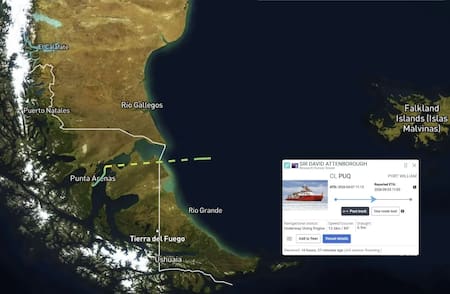 Después de su paso por Punta Arenas, Chile, el rompehielos británico RRS Sir David Attenborough volvió a cruzar aguas argentinas con destino a Malvinas portando una bandera del gobierno de ocupación de las islas.