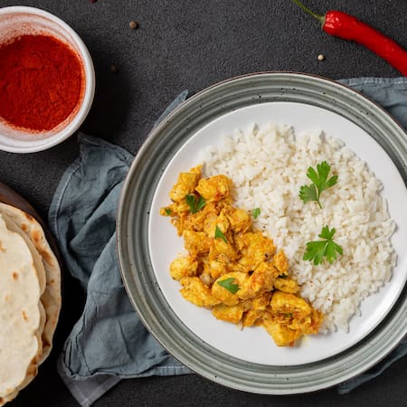 - Arroz blanco o pan naan para acompañar (opcional)