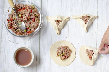 - Cerrá las empanadas formando un triángulo y presioná bien los bordes para que no se abran durante la cocción.
