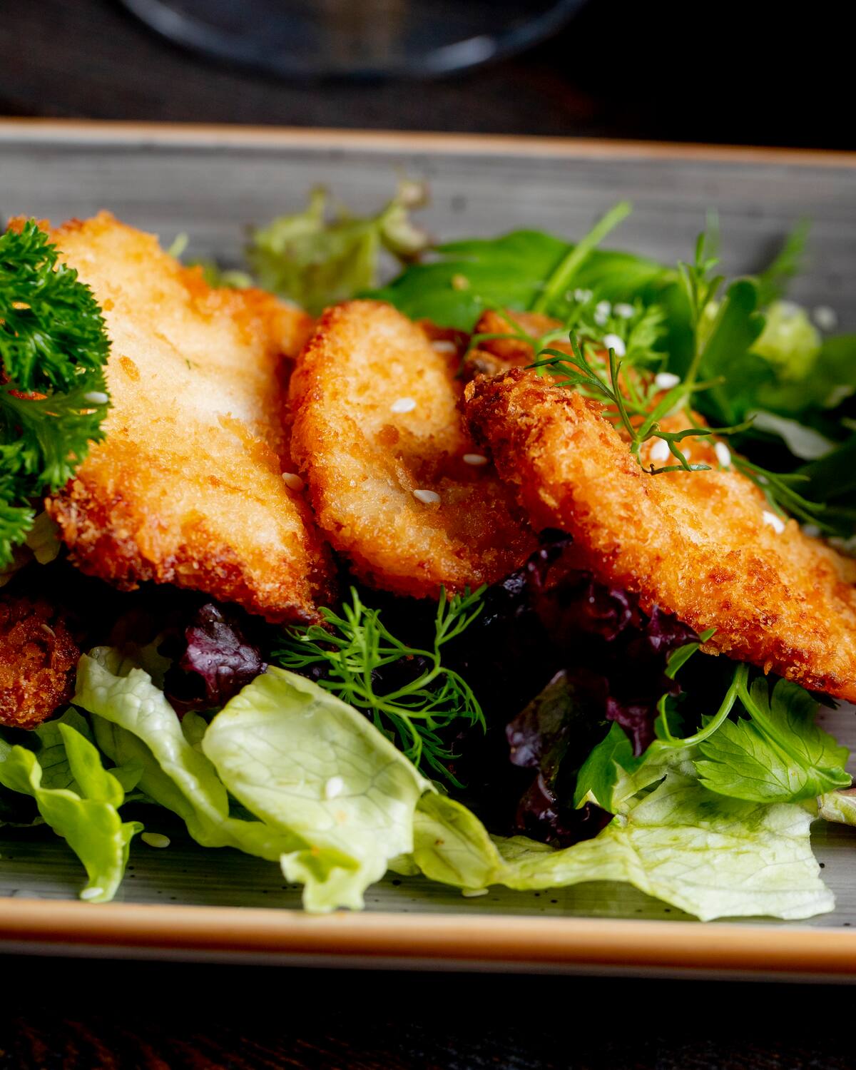 Esta reversión de la milanesa de pollo puede servirse con ensalada de pepino y cebolla morada, vinagre de arroz y cilantro, coleslaw liviana con repollo, zanahoria y aderezo de yogur y limón, batatas al horno con pimentón dulce o incluso con papas fritas y puré de papa y calabaza.