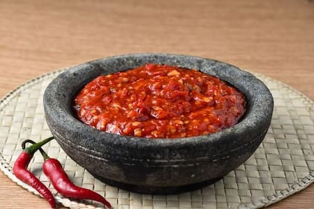 Variante del sambal tradicional, incorpora terasi, una pasta fermentada de camarón. Se prepara en mortero y acompaña pescados, arroces, vegetales o tofu.