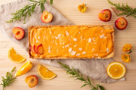 - Cubrir con film y dejar reposar en la heladera toda la noche. Al día siguiente ya estará bien firme y lista para desmoldar. Para decorar, se pueden sumar duraznos en láminas finitas y un poco de galleta triturada en los bordes.