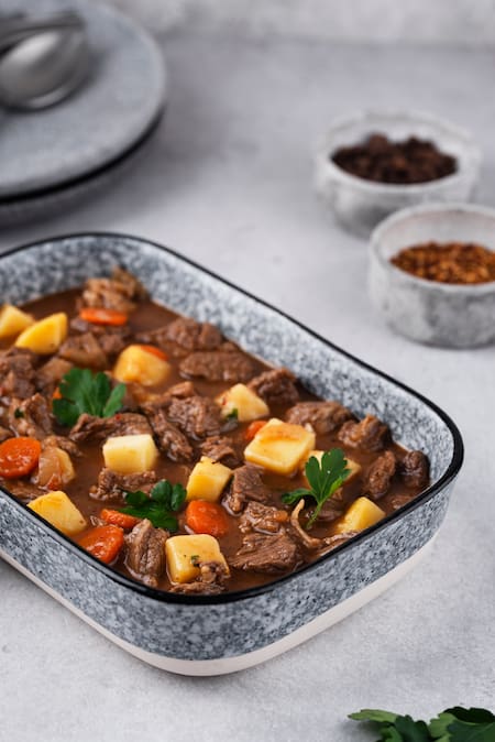 Estofado tradicional de carne con papas al vapor