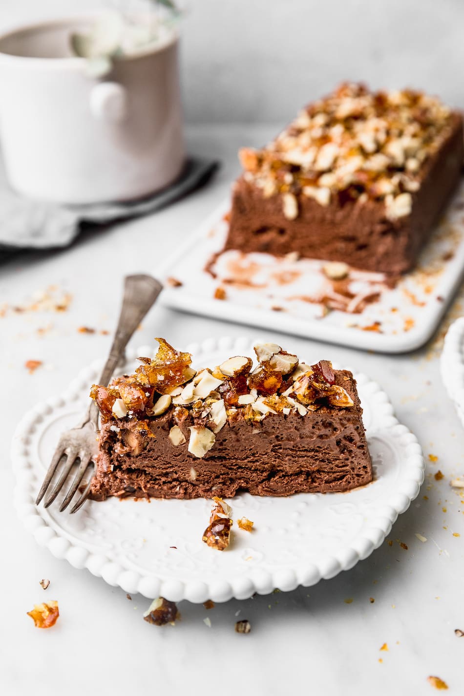 - Para servir, dale la vuelta al molde y ponle el resto del praliné encima. Si está muy congelado, dale unos minutos antes de cortar y servir.