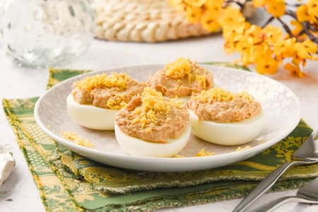 Los huevos rellenos son un clásico navideño económico y efectivo que nunca falla: pueden ser de atún, palta, queso crema o verduras. Requieren de pocos ingredientes y se pueden decorar con alcaparras, ciboulette o pimentón para darles un toque festivo.