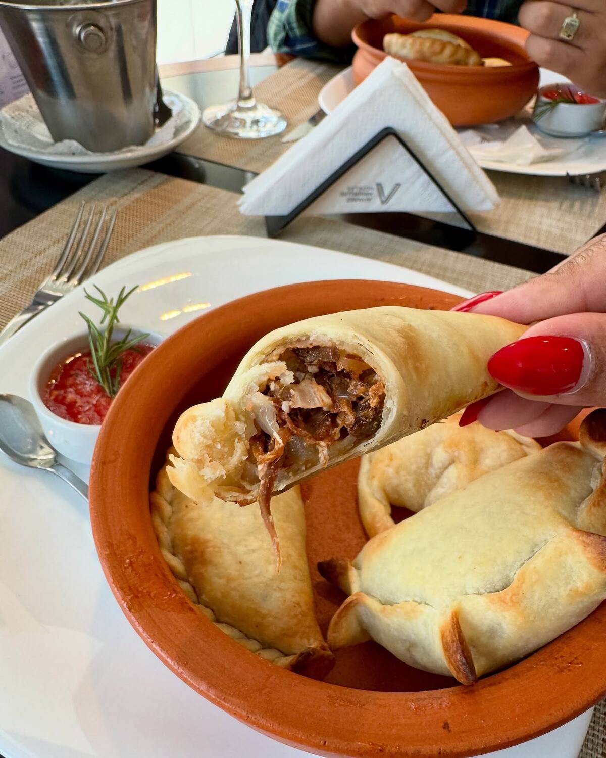 Las empanadas salteñas suelen servirse con una salsa picante llamada llajua, típica del norte argentino y de origen andino. Una verdadera delicia.