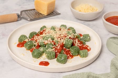 Otra opción tradicional es la de ñoquis de espinaca, una opción que suma el aporte de vegetales a la masa y resulta en una receta con color y sabor particular.