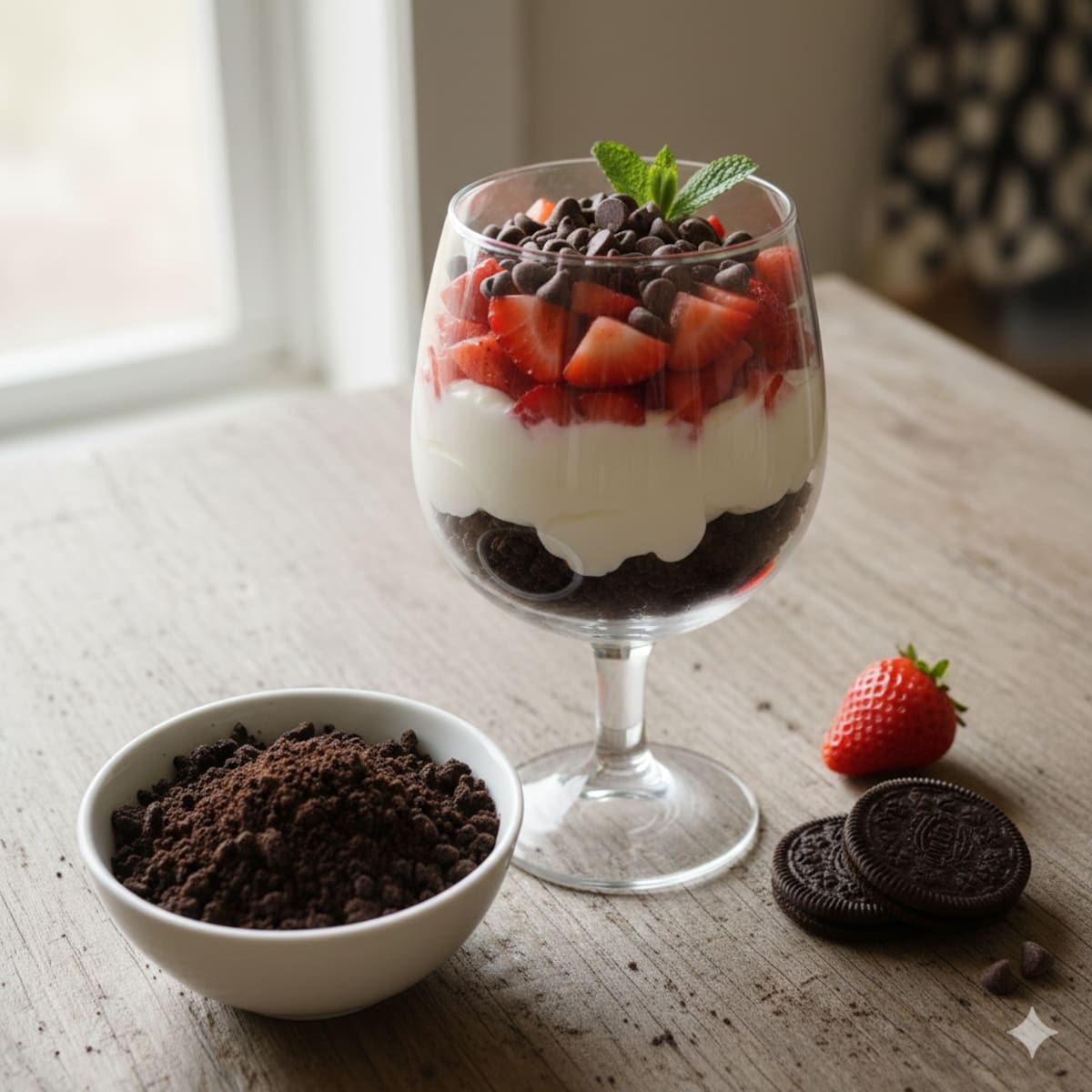 En esta oportunidad haremos una copas saludables con yogur natural y una masa crocante de chocolate. Con pocos ingredientes podrás tener un postre ¡exquisito! Siempre es conveniente tener el tiempo a tu favor a la hora de hacer esta receta, para darle el frío justo en la heladera. Requiere aproximadamente de unas dos horas.
