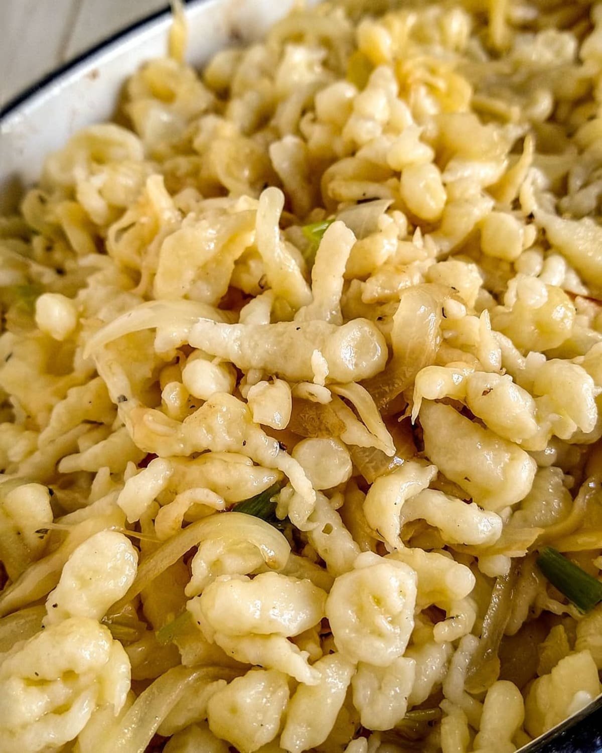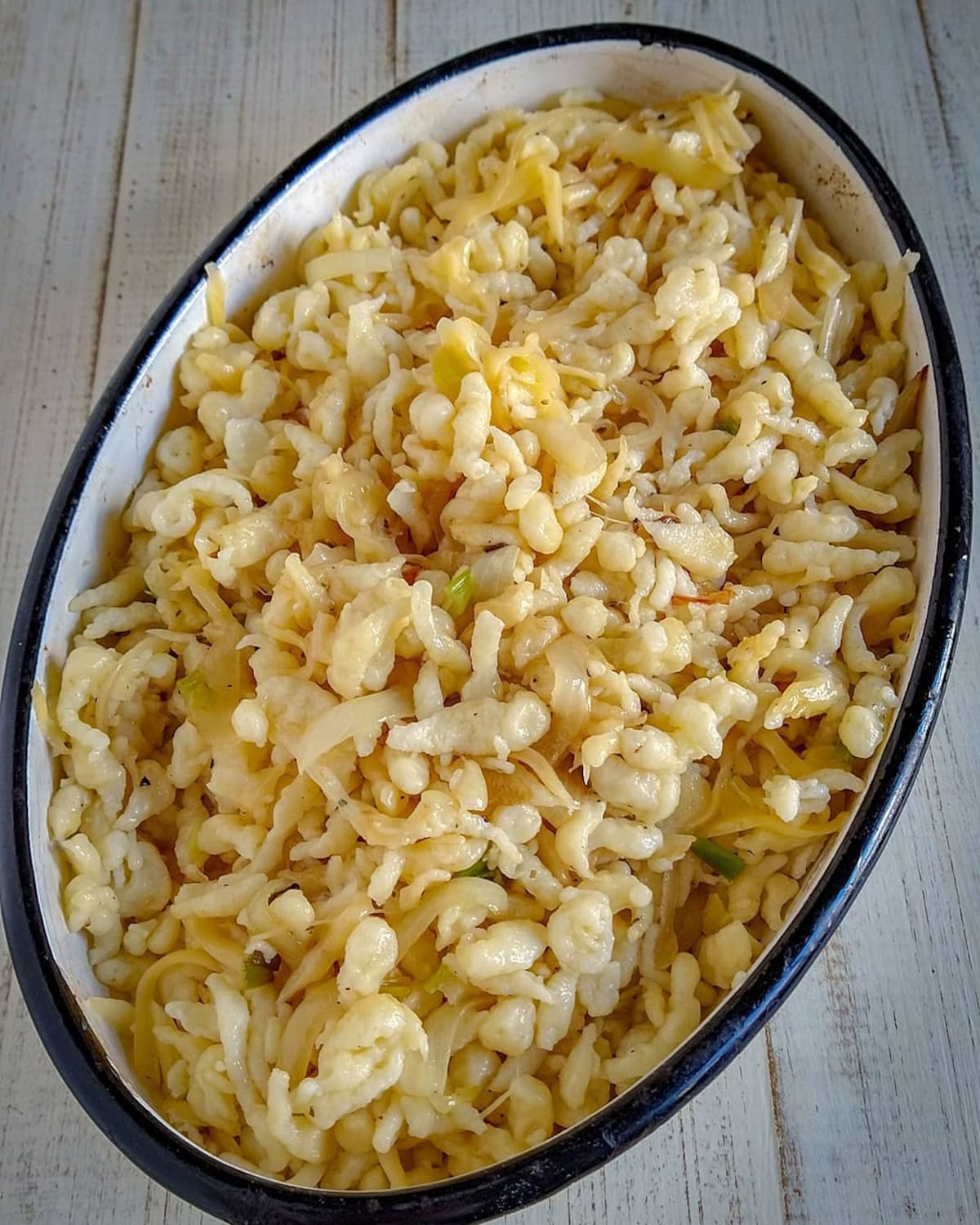 Esta pasta tiene raíces en las cocinas alemana, austríaca y húngara, y llegó a la Argentina de la mano de los inmigrantes europeos que se establecieron en el país a comienzos del siglo XX. Con el tiempo, la receta se integró a la cocina local, especialmente en zonas donde la influencia centroeuropea sigue muy presente.