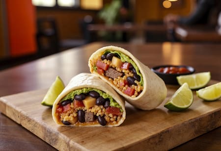 - Colocá la mezcla sobre las tortillas y añadí queso feta desmenuzado y hojas de espinaca fresca. Enrollá y disfrutá de un burrito liviano y nutritivo.