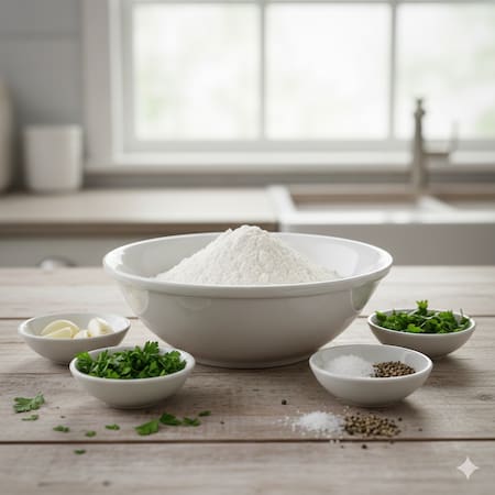 - En otro bol mezclamos la harina, con la sal, la pimienta y agregamos el resto de los ingredientes, mezclamos hasta integrar