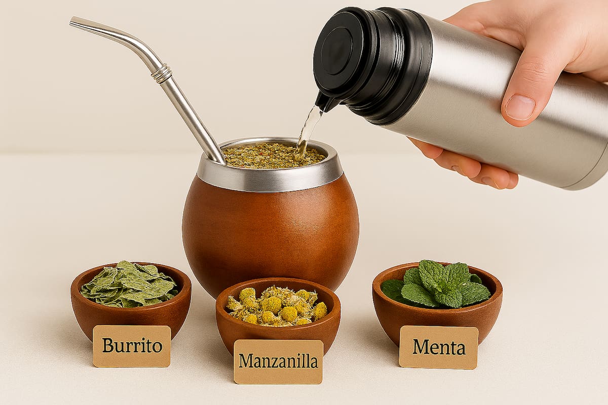 - Mezcladas con la yerba: se pueden agregar pequeñas hojas dentro del mate para que el sabor se integre desde el primer cebado.