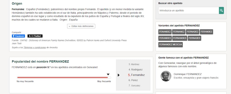 La aplicación que permite conocer cuán popular es un apellido en el mundo y en qué países hay personas que lo llevan en su documento, es Geneanet. Tan buena es esta página que la publicación Genbeta la describe como el “Google Maps de los apellidos”.