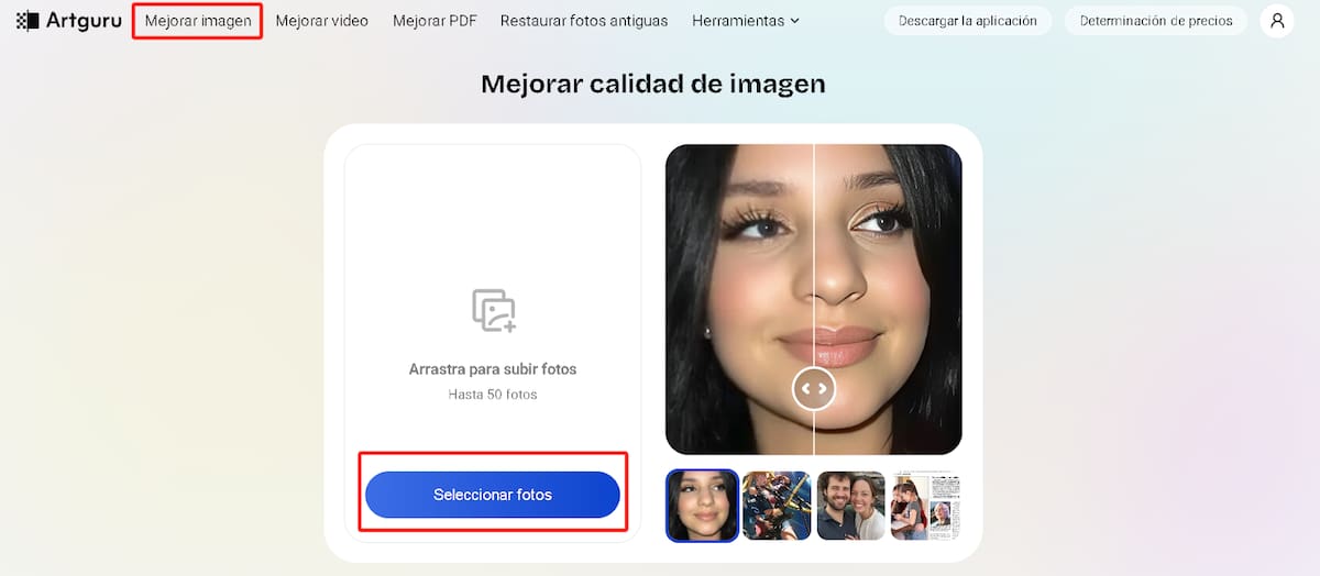 Si buscas una herramienta sencilla y práctica para mejorar la imagen con IA, Artguru es una opción práctica. Solo necesitas subir tu imagen original y dejar que el sistema haga el resto. Así puedes ahorrar tiempo y dinero mientras obtienes la mejor calidad posible.