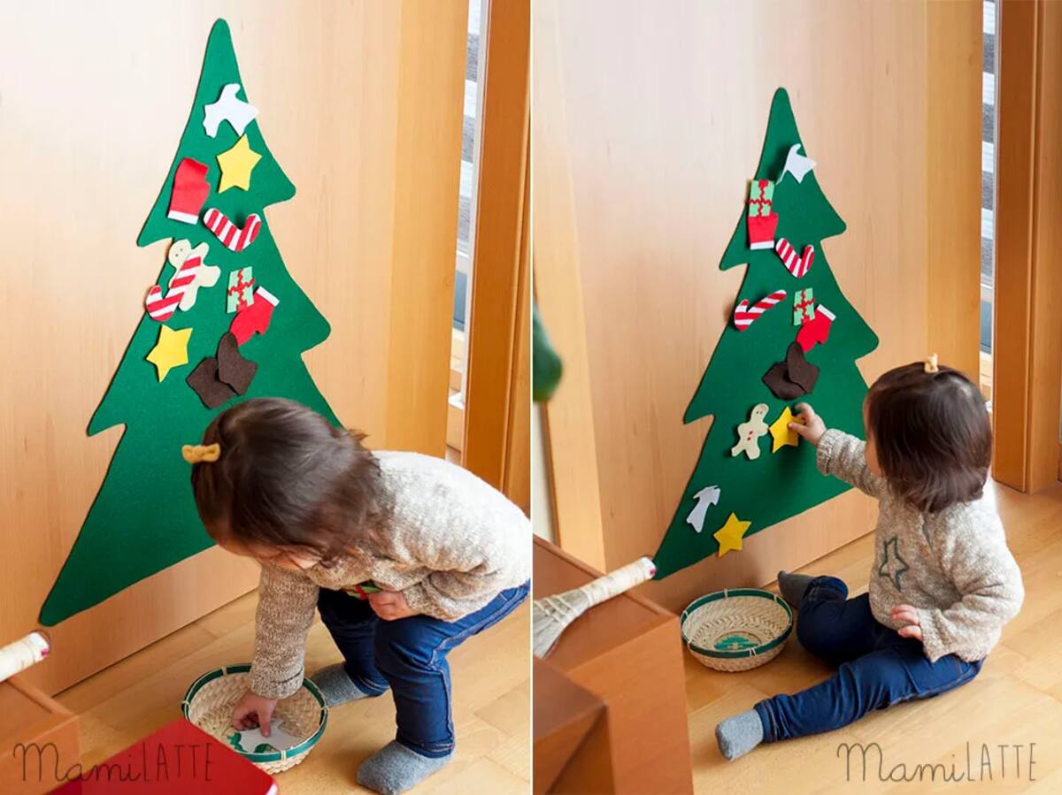 El árbol de pared, en tendencia, es una oportunidad clave para que los más pequeños puedan demostrar sus habilidades artísticas. Se utilizan pedazos de cartón para simular la forma. De ahí en más la elección de colores y decoraciones es personal.