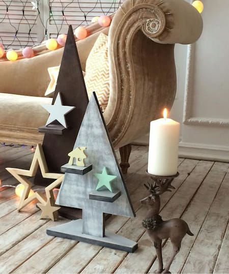 Y para cerrar, un guiño al glamour: estrellas, espejos, figuras refinadas. El dorado y el beige se llevan bien con gran elegancia y sin perder ese espíritu festivo