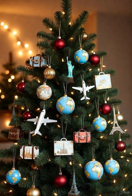 Algunas personas deciden colgar miniaturas de aviones, etiquetas de valijas, mapas, boletos de avión y hasta monedas extranjeras. Cada elemento funciona como un recordatorio visible del deseo de viajar y mantiene activa la intención durante toda la temporada festiva.