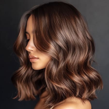 El mocha mousse funciona especialmente bien en pieles cálidas o neutras, donde los reflejos café y avellana acompañan naturalmente los subtonos dorados. También es perfecto para quienes ya tienen bases castañas o castaño oscuro, ya que aclara lo justo sin exigir procesos agresivos.