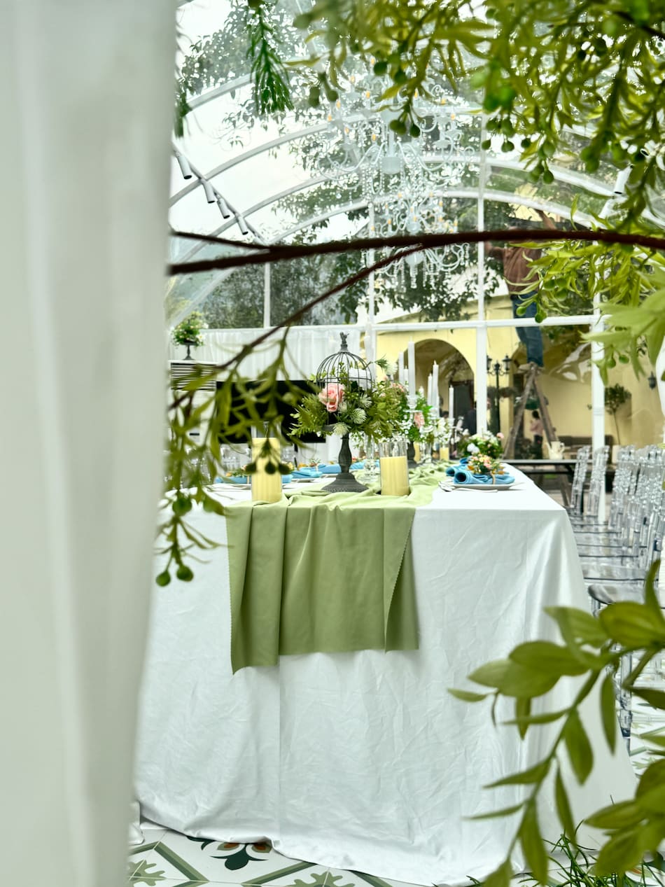 - Optar por centros de mesa simples, con ramas, follaje o velas bajas.