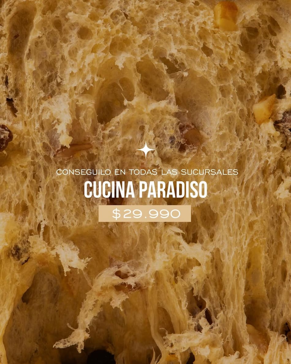 El pan dulce de Donato De Santis se ofrece bajo el sello de Cucina Paradiso, la cadena de restaurantes del chef. Con 750 gramos, esta delicia tiene un valor de $29.990.