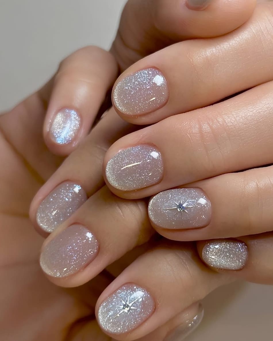 Los esmaltes metalizados y con glitter son un infaltable de las fiestas. En uñas cortas, aplicarlos de forma uniforme o en una sola uña como acento logra un resultado elegante y equilibrado.